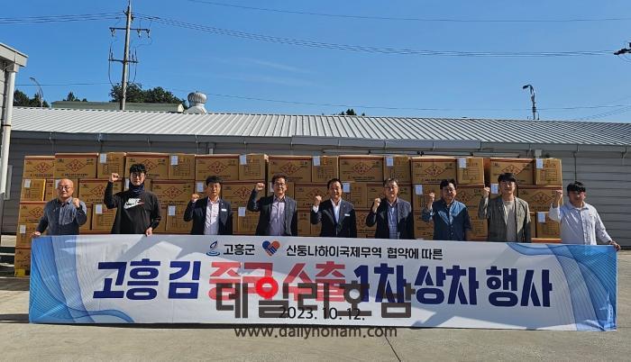 전남 고흥군이 중국 산둥나하이국제무역과수출 협약을 마친 가운데 고흥 김을 수출하기 위해 상차 행사를 가졌다. (고흥군 제공)