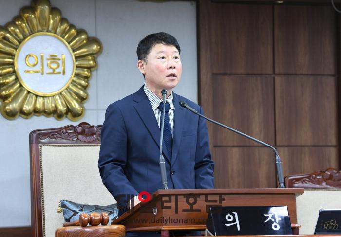 전남 순천시의회가 13일 제272회 임시회를 개회했다. 사진은 정병회 의장이 제1차 본회의에서 개회사를 하고 있다. (순천시의회 제공)