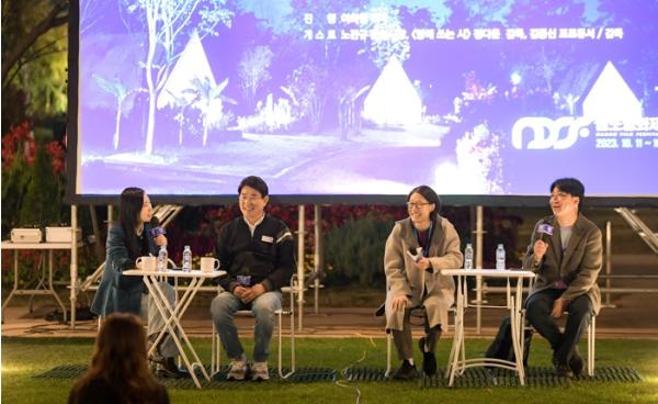 남도영화제 시즌 1 순천 특화프로그램 중 하나인 ‘노작가와 함께하는 정원 시네마 토크’가 지난 13일 저녁 가든스테이 쉴랑게 원형광장에서 열렸다.