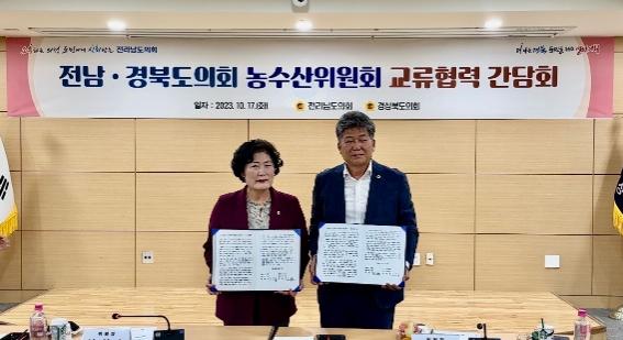 전남도의회 농수산위원회는 10월 17일 경북도의회 농수산위원회를 방문해 기상이변에 따른 자연재해로부터 농어업인을 보호하기 위한 정부의 농어업 안정대책 마련을 촉구하는 공동성명서를 발표했다.