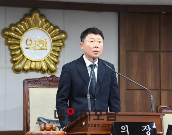 전남 순천시의회가 지난 29일 제273회 제2차 정례회 제2차 본회의를 열고 제3회 추가경정예산안 등 총 7건의 안건을 심의·의결했다. 사진은 정병회 의장이 폐회사를 하고 있는 모습. (순천시의회 제공)