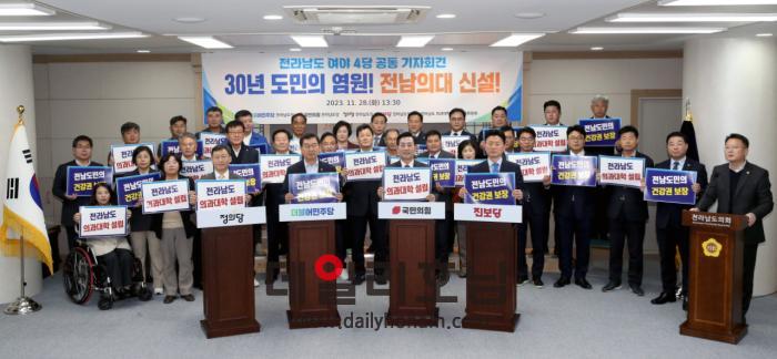 전남지역 여야 4당이 국립의대 신설과 신설정원 확보에 대해 한목소리를 냈다. 지난 28일 전남도의회에서 기자회견을 갖고 정부를 향해 공동 대응을 시사했다.