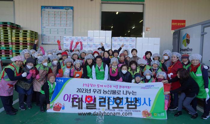 이에 최남휴 조합장은 “이웃을 위한 뜻깊은 행사에 함께해 주신 여성조직연합회에 진심으로 감사드린다”며 “작은 정성이지만 모두의 따뜻한 마음과 농협의 가치가 잘 전달됐으면 한다”고 말했다.