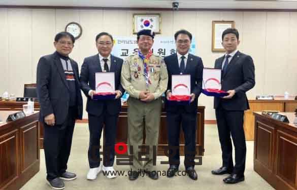 전남도의회 교육위원회 3인방이 한국스카우트전남연맹(이하 전남스카우트)으로부터 감사패를 받았다. 청소년들에 대한 지원을 아끼지 않았다는 점에 감사하는 마음을 담았다.