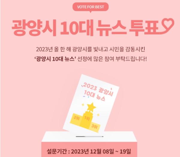 광양시는 올 한해 광양시를 빛내고 가장 관심을 끌었던 ‘올해의 10대 뉴스’를 선정하기 위해 오는 19일까지 온라인 설문조사를 실시한다.