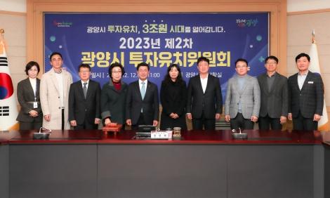 시는 12일 시청 상황실에서 ‘2023년 제2차 광양시 투자유치위원회’를 열고 금년 투자유치 성과 등 현안사업 보고와 투지유치 관련 시책홍보를 거쳐 투자유치 유공자 성과급 지급 등 6건의 심의안건을 의결했다.