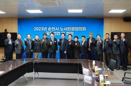 순천시가 14일 순천상공회의소 챔버라운지에서 노동계·경영자단체·시민단체 등 노사민정협의회 위원과 실무협의회 위원 20여 명이 참석한 가운데 ‘2023년 순천시 노사민정협의회’를 개최했다.
