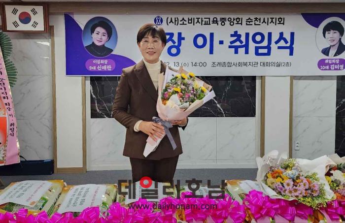 김미영 신임회장은 취임사를 통해 “회원들의 적극적인 참여와 지역사회와의 소통, 이웃에 대한 봉사를 적극 실현해 시민들로부터 사랑을 받는 (사)소비자교육중앙회 순천시지회가 되도록 힘쓰겠다.:고 말했다.