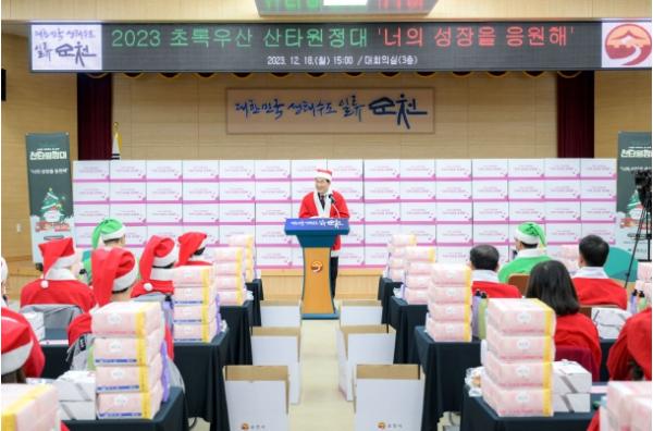 순천시와 초록우산 어린이재단 전남지역본부는 18일 순천시청 대회의실에서 지역 아동들에게 행복한 크리스마스를 선사하기 위해 ‘2023 순천시와 함께하는 산타원정대’ 행사를 개최했다고 밝혔다.