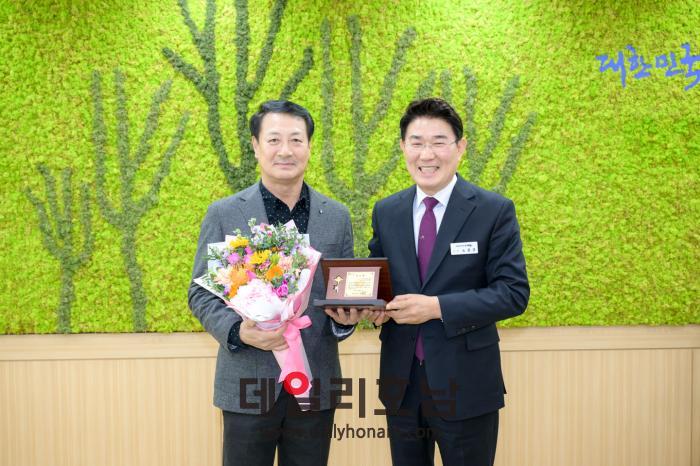 30년을 순천시청 운동경기부를 이끌어온 김태성 총감독(왼쪽)이 명예로운 퇴직을 한다. (순천시 제공)