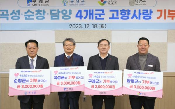 구례·곡성·순창·담양 4개군 군수는 지난 18일 고향사랑기부제 활성화를 위해 ‘고향사랑기부제’기부 릴레이에 동참했다고 전했다.