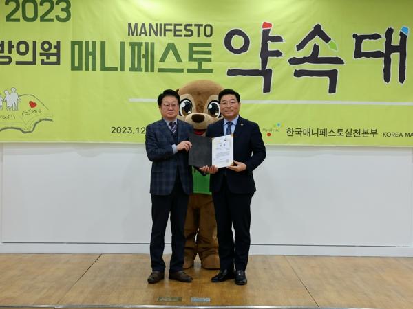 전라남도의회 신민호 기획행정위원장이 21일 한국매니페스토실천본부가 주최한 ‘2023 지방의원 매니페스토 약속대상’ 좋은 조례 분야에서 우수상을 수상했다.