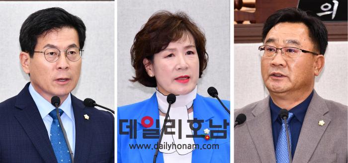 전남 여수시의회가 시민단체가 지난 22일 여수시의회 소회의실에서 ‘여수지역 민주열사 재조명 및 선양사업 방향 정책토론회’를 개최하고 지역 민주열사에 대해 재조명에 나섰다. 사진은 왼쪽부터 강현태 의원, 이미경 의원, 김철민 의원 순이다. (데일리호남 DB)