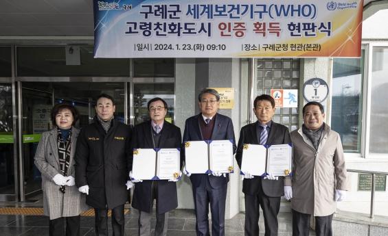 전남 구례군은 1월 23일 구례군청에서 세계보건기구(WHO) 고령친화도시 인증을 기념하는 현판식을 했다고 밝혔다.