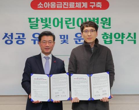 광양시가 29일 시청 접견실에서 평일 야간시간대와 휴일(토·일·공휴일) 소아 경증 환자가 진료받을 수 있는 달빛어린이 병원 성공적인 유치·운영을 위한 협약식을 가졌다.