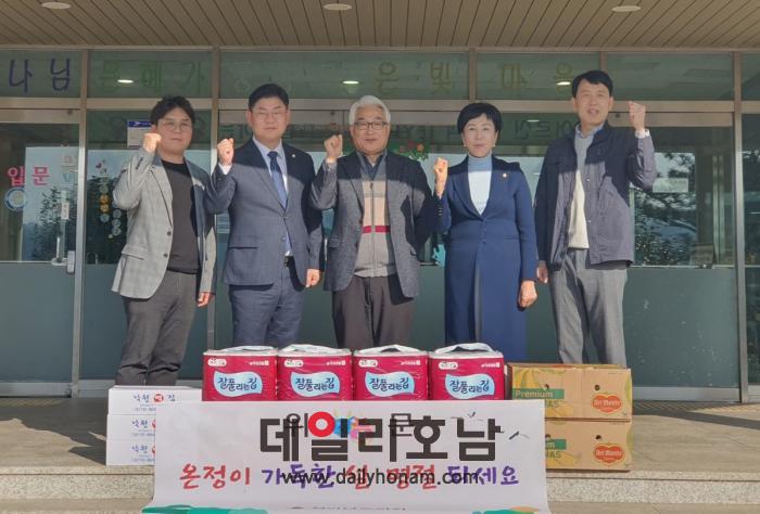 전남도의회 한춘옥 의원(오른쪽에서 두 번째)이 지난 31일 순천시 상사면 소재 ‘은빛마을’을 방문해 위문했다. 외쪽에서 두 번째는 순천시의회 장경원 의원. (전남도의회 제공)