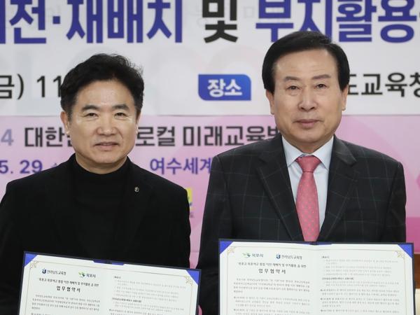 전라남도교육청과 목포시는 2일 전라남도교육청에서 목포고·목포여고 통합 이전·재배치와 원도심 활용방안을 위한 업무협약을 체결했다.