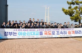 그러면서, 광양?여수시의회 의원들은 “지난 2013년부터 지속적으로 요구해 온 이순신 대교 국도 승격을 정부가 더 이상 미루지 말 것”을 밝히며, ▲정부는 이순신대교 포함 국도 59호선 기점을 광양 태인에서 여수 월래로 즉시 연장할 것 ▲정부는 이순신대교와 국가산단 진?출입도로 유지?관리 책임을 즉시 이행할 것을 강력히 촉구했다.
