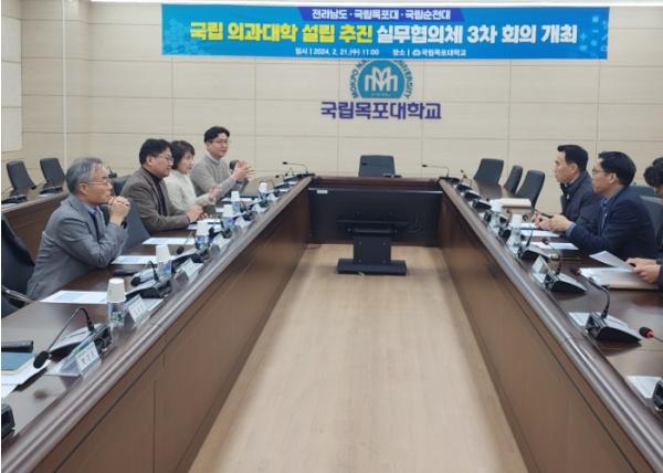 전라남도는 21일 목포대학교, 순천대학교와 함께 전남도민의 30년 숙원인‘전라남도 국립 의과대학 신설’을 위한 관계기관 실무협의체 회의를 열어 공동 단일 의과대학 설립안 마련을 논의했다.