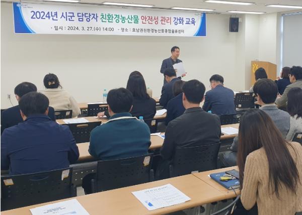 전라남도는 건강한 친환경농업을 확산하고, 소비자 신뢰를 높이기 위해 27일 시군 담당 공무원 교육을 시작으로 2024년 친환경농산물 안전성 관리 강화 교육에 본격 나선다고 밝혔다.