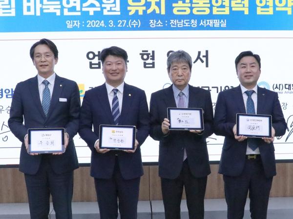전라남도는 27일 도청 서재필실에서 영암군, (재)한국기원, (사)대한바둑협회와 국립 바둑연수원 유치 업무협약을 했다.