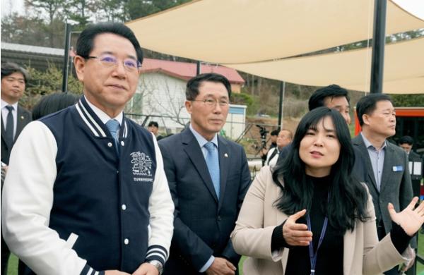 이날 김영록 지사는 유별난 안터마을의 사업추진 상황과 성과를 청취하고 주변 시설과 자체 개발한 제품을 시식한 뒤 청년들과 대화를 이어갔다.