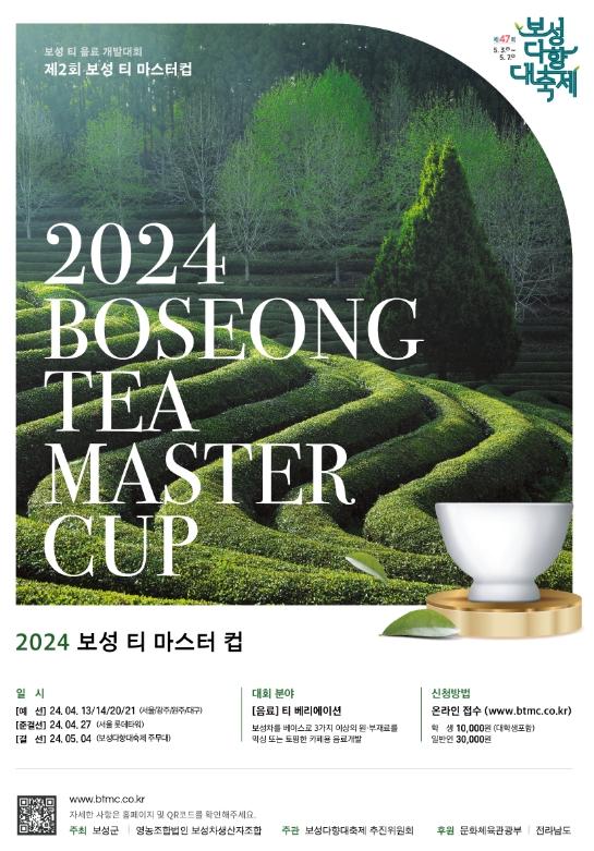 보성 티 마스터컵은 보성차를 기본 재료로 3가지 이상의 원·부재료를 혼합(믹싱) 또는 고명(토핑)해 카페용 음료를 개발하는 경연대회로 서울과 광주, 원주, 대구 4개 도시에서 예선전을 거쳐 20명의 출품작이 준결선에 진출하게 된다.