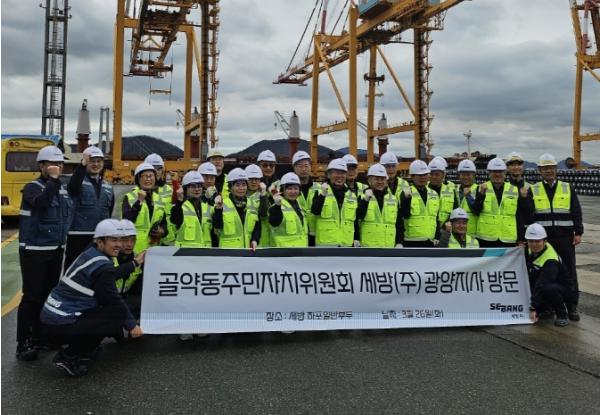 박상훈 골약동장은 “생생한 현장 설명으로 항만시설을 견학하게 해주신 세방(주) 광양지사 직원분들께 감사드린다”며 “하포 일반부두가 지역민과 상생하며 동반 성장할 수 있도록 적극적인 관심을 기울이겠다”고 말했다.