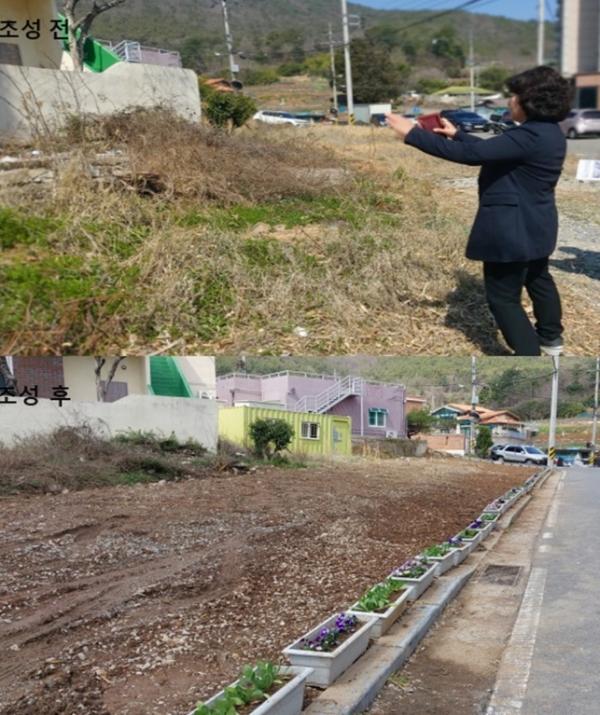 이에 김은주 문수동장은 소유주를 수소문해 꽃밭 조성을 제안했고 땅 소유주 한 모씨는 이를 기꺼이 수락했다.