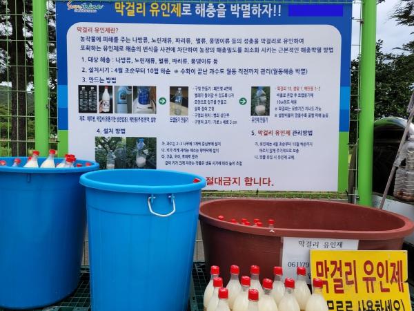 시는 광양주조공사와 2020년부터 협업해 4년간 약 11톤의 폐막걸리를 활용한 해충유인제를 6,000여 농가에 공급해 농민들로부터 큰 호응을 받았다.