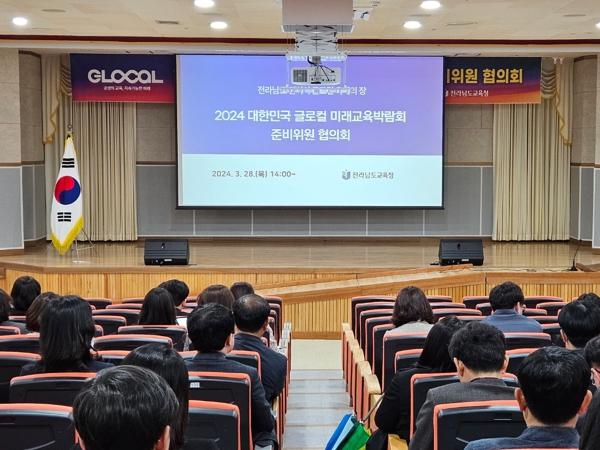 전남교육청은 이를 위해 28일 전라남도교육청교육연구정보원에서 교육지원청 팀장과 팀원 등 100여 명이 참석한 가운데‘2024 대한민국 글로컬 미래교육박람회 준비위원 협의회’를 가졌다.