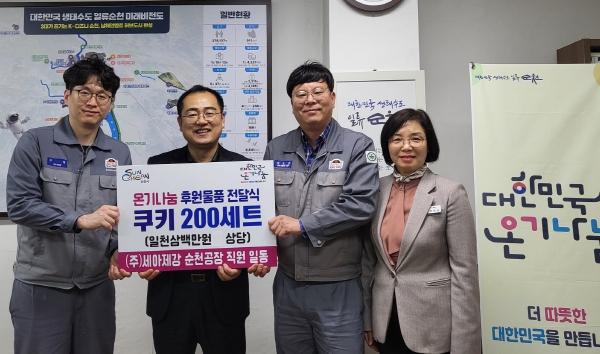 순천시는 지난 3월 28일 ㈜세아제강 순천공장에서 쿠키 200세트(1,300만원 상당)를 기부했다고 밝혔다.