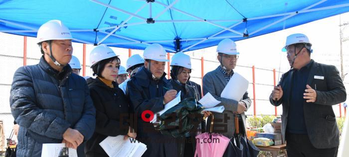 지난달 4일 제275회 임시회 기간 중, 순천시의회 도시건설위원회 위원들이 공사 현장을 방문했다. (순천시의회 제공)