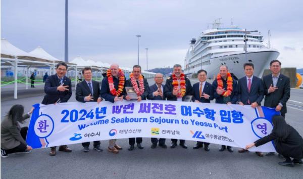 4일 올 들어 첫 입항한 크루즈선은 미국 씨본사(Seabourn)의 ‘씨본 써전호(Seabourn Sojourn)’다. 승객과 승무원 870명을 태우고 지난달 24일 대만에서 출발해 일본, 부산을 거쳐 이날 여수에 들렀다.