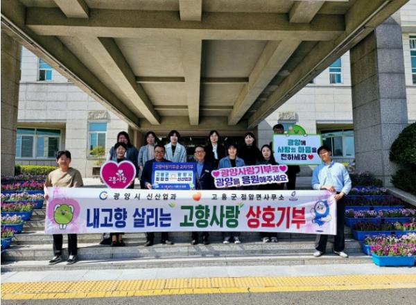광양시 신산업과와 고흥군 점암면 공직자들이 지난 10일 지역 간 상생발전을 위해 고향사랑기부금 상호기부에 동참했다.