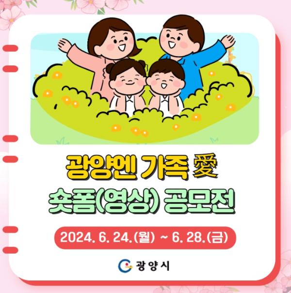 광양시가 제13회 인구의 날(2024. 7. 11.)을 맞아 오는 6월 28일까지 2024년 ’광양엔 가족愛’ 숏폼(영상) 공모전을 실시한다고 밝혔다.