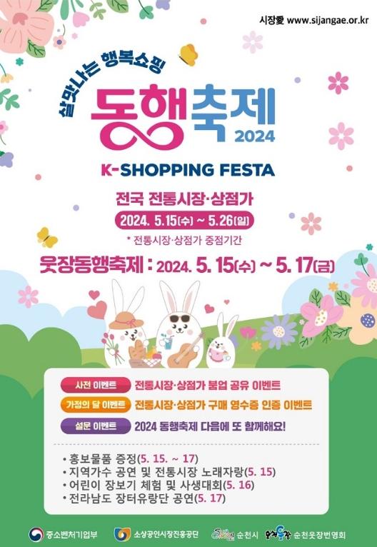 또한 순천 웃장은 국내 최대 규모의 중소기업·소상공인 제품 소비 촉진 행사로 전국 각지에서 집중적으로 개최되고 있는 동행축제에 15일부터 17일까지 3일간 동참해 관광객들의 이목을 집중시킬 예정이다.