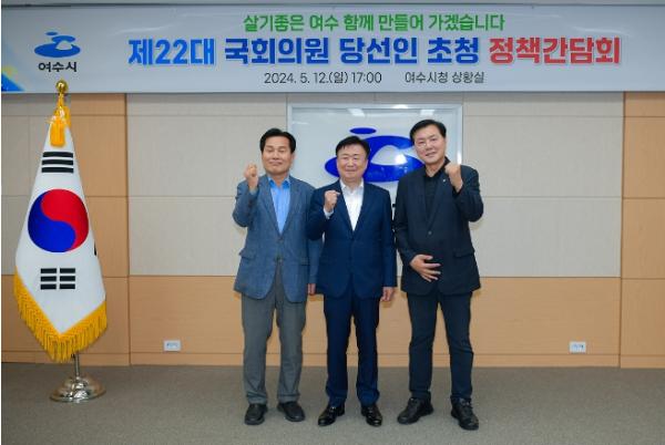 정기명 여수시장이 제22대 여수 갑을지역구 국회의원 당선인을 초청해 정책간담회를 개최, 지역 현안 해결에 힘을 합치기로 뜻을 모아 주목된다.