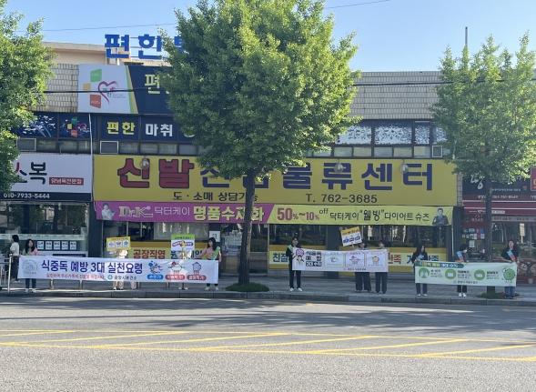 이날 캠페인에서는 보건소와 센터 직원 20여 명이 참여한 가운데 식품안전의 날 홍보, 식중독 예방 3대 수칙 안내, 덜어 먹기 실천 등 위생적인 외식환경 실천, 음식물쓰레기 및 일회용품 사용 줄이기로 친환경 음식문화 실천, 광양시 어린이·사회복지급식관리지원센터 역할 등에 대해 홍보했다.