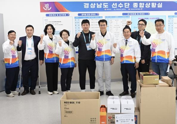 이날 전남도 주순선 관광체육국장, 이상심 보건복지국장과 박정현 전남장애인체육회 상임부회장은 17개 시·도별 상황실에 목포의 해산물 간식세트, 제과빵, 컵라면 등 지역 특산물로 구성된 간식과 기념품을 전달했다.