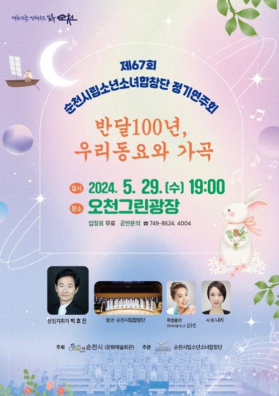순천시는 오는 29일 수요일 저녁 7시 순천 오천그린광장에서 순천시립소년소녀합창단 제67회 정기연주회 공연을 개최한다고 밝혔다.