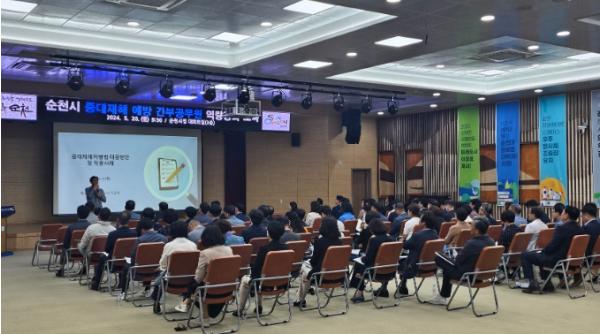 순천시는 지난 20일 국?과장 등 5급 이상 간부공무원 90명을 대상으로 시청 대회의실에서 ‘2024년 순천시 중대재해 예방을 위한 간부공무원 역량강화 특별교육’을 실시했다고 밝혔다.