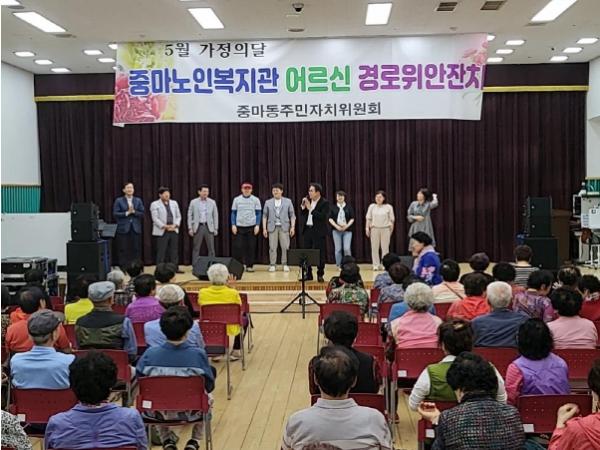 광양시 중마동주민자치위원회는 5월 가정의 달을 맞이해 지난 16일 중마노인복지관을 찾아 어르신 경로위안잔치를 열었다.