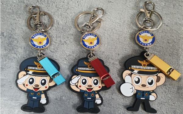 이 호루라기는 포돌이·포순이 캐릭터를 활용한 열쇠고리 형태로서 휴대전화나 가방 등에 손쉽게 부착할 수 있어 활용도가 높아 상시 착용이 가능하다.