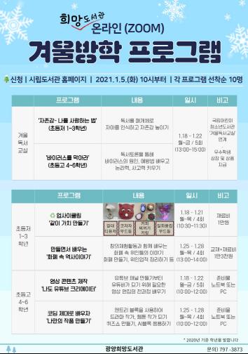 광양희망도서관이 방학을 맞아 어린이들을 대상으로 1월 18일~28일 2주간 겨울방학 교육프로그램을 운영한다고 밝혔다.