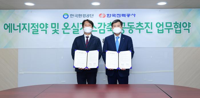 한국전력(대표이사 사장 김종갑)은 8일 한전 경인건설본부에서 환경부 산하 한국환경공단(이사장 장준영)과 '에너지 절약 및 온실가스 감축 공동 활동을 위한 업무협약'을 체결했다고 밝혔다.(사진)