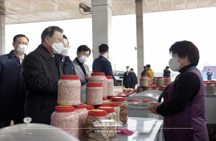 오늘 문 대통령이 젓갈타운에서 구입한 반찬류는 청와대 춘추관 구내식당에 대부분 전달할 예정이다.
