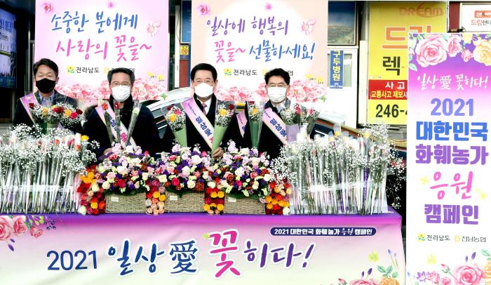 전남도는 농협전남지역본부와 함께 '코로나19' 장기화로 어려움을 겪고 있는 절화류 화훼농가를 돕기 위한 꽃 사주기 운동에 나섰다.