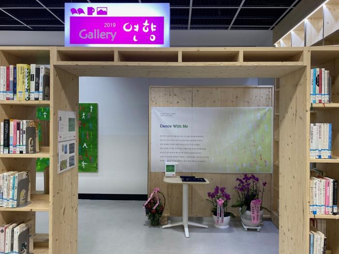 이곳의 갤러리 역시 도서관을 이용하면서 곳곳에서 작품을 감상할 수 있도록 도서관 로비, 계단, 자료실 벽면, 서가 사이 등을 활용해 꾸며졌다.
